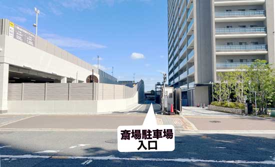 右側の堺市立斎場駐車場には、ご親族様4台(無料)まで駐車出来ます。