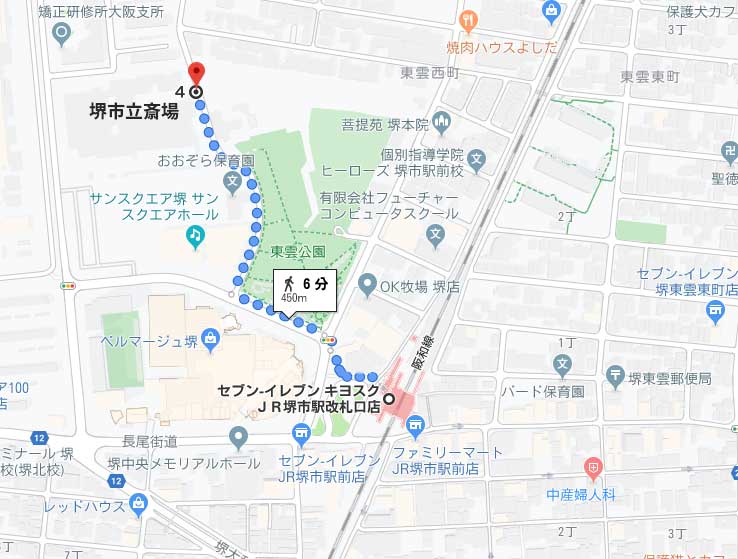 - 約50メートル先の左側にある堺市立斎場の駐車場へ(到着)